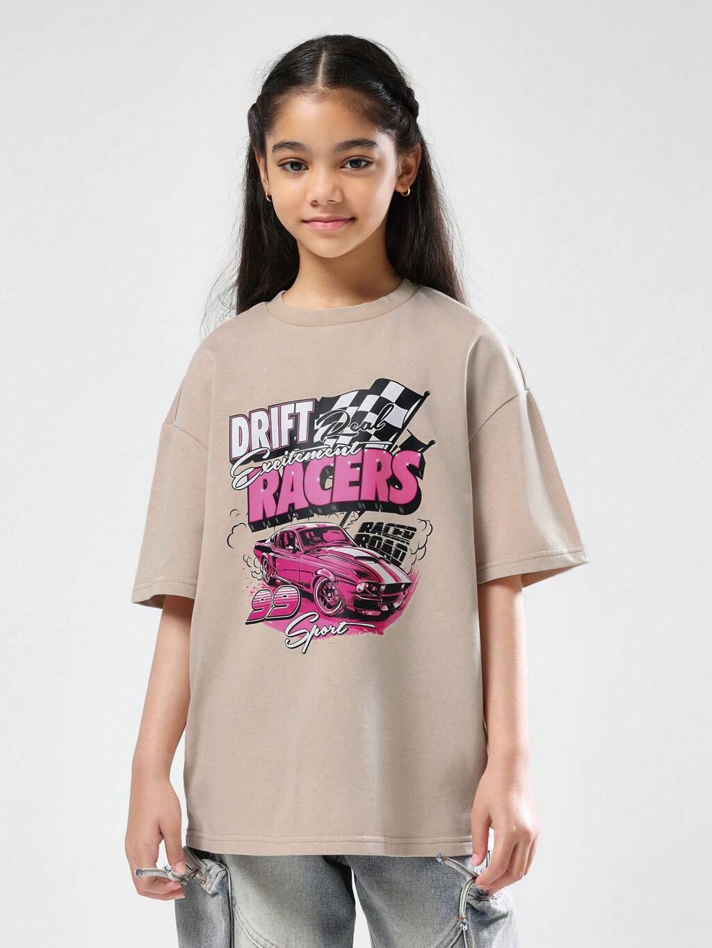 Oversize-T-Shirt aus Baumwolle mit Drift-Auto-Print