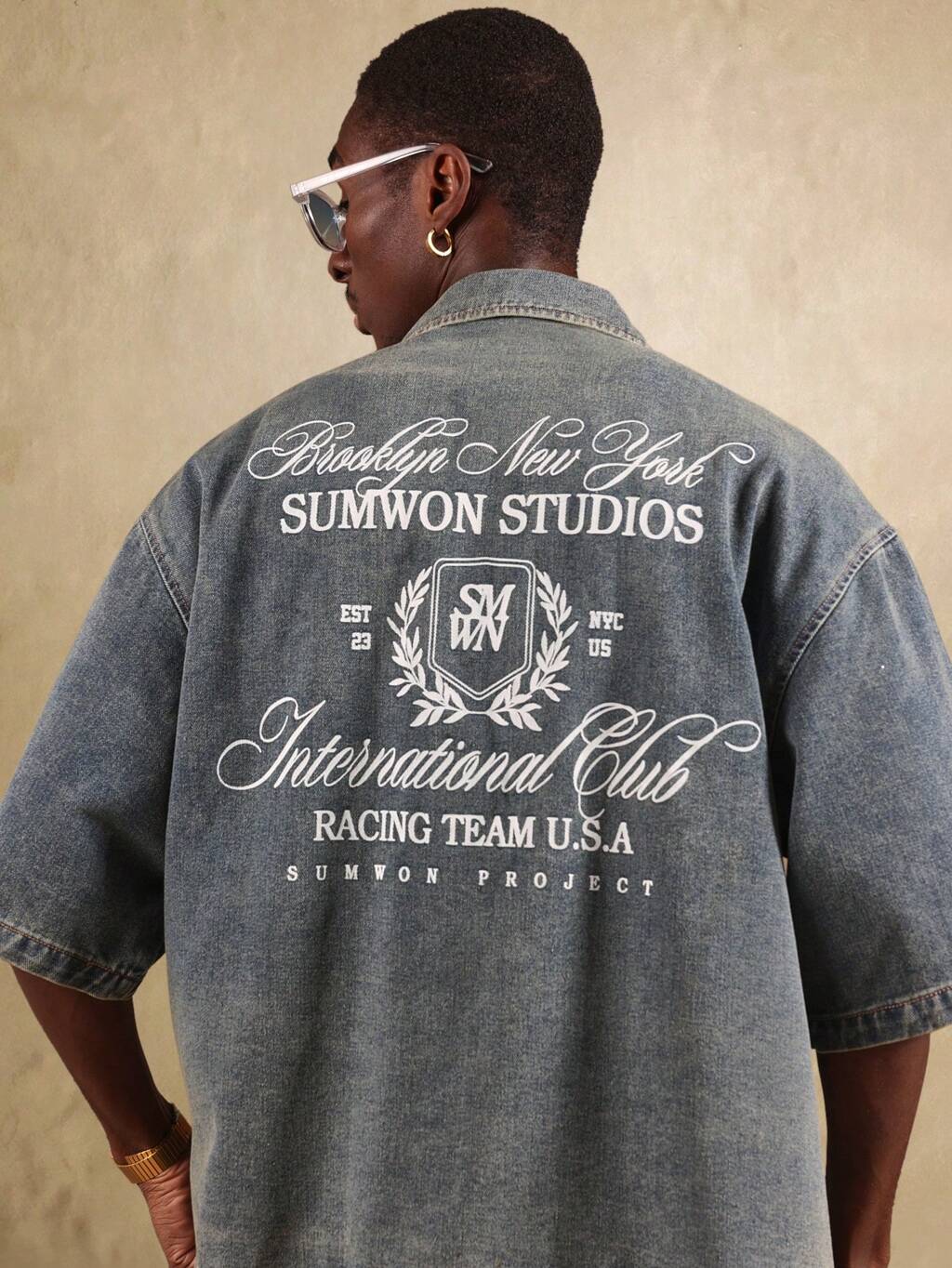Übergroßes Jeanshemd des Studios Brooklyn Racing Teams