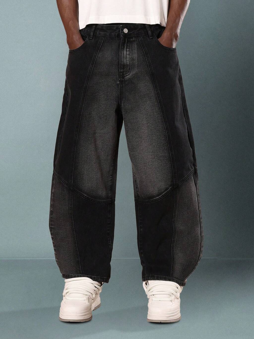 Weite Passform Jeans mit Kontrastpanelen und Spritzlackierung