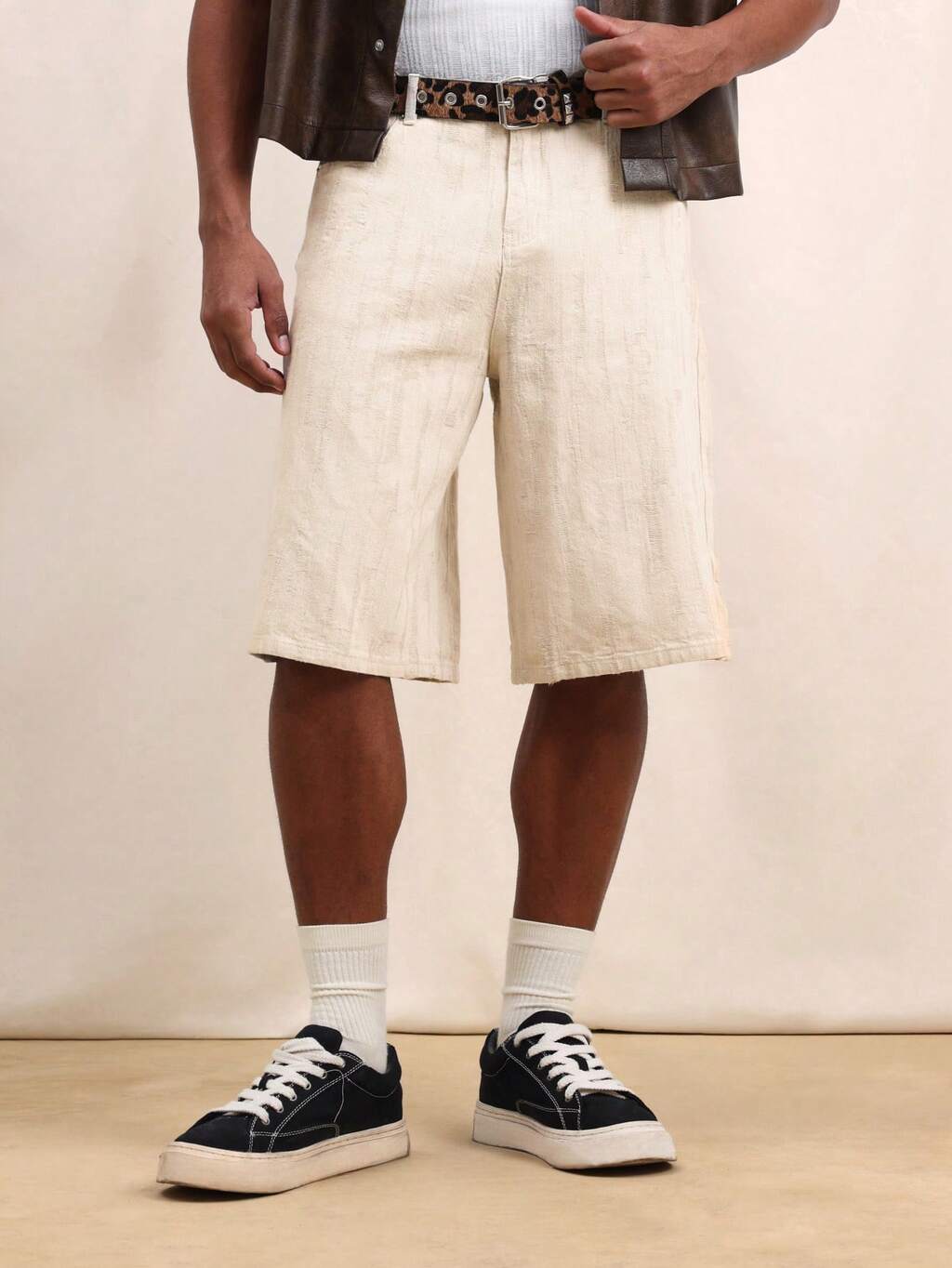 Herren Leicht gewaschene Jeans-Shorts mit weitem Bein, unterhalb des Knies, weit geschnitten, mit Ösen-Detail, im Vintage-Stil, für den Sommer, lässig, locker geschnitten, knielang, Bermuda-Shorts