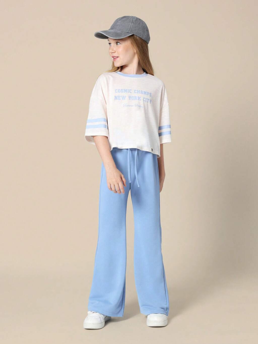 Kastenförmiges T-Shirt mit College-Schriftzug und ausgestellter Jogginghose