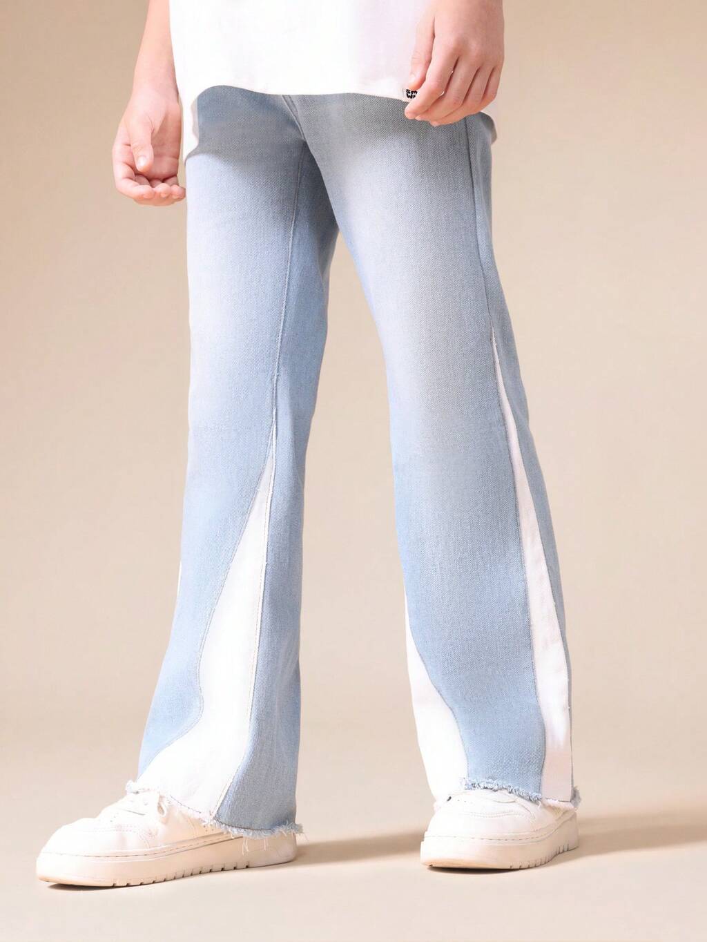 ausgestellte Jeans mit Einsätzen und ausgefranstem Saum