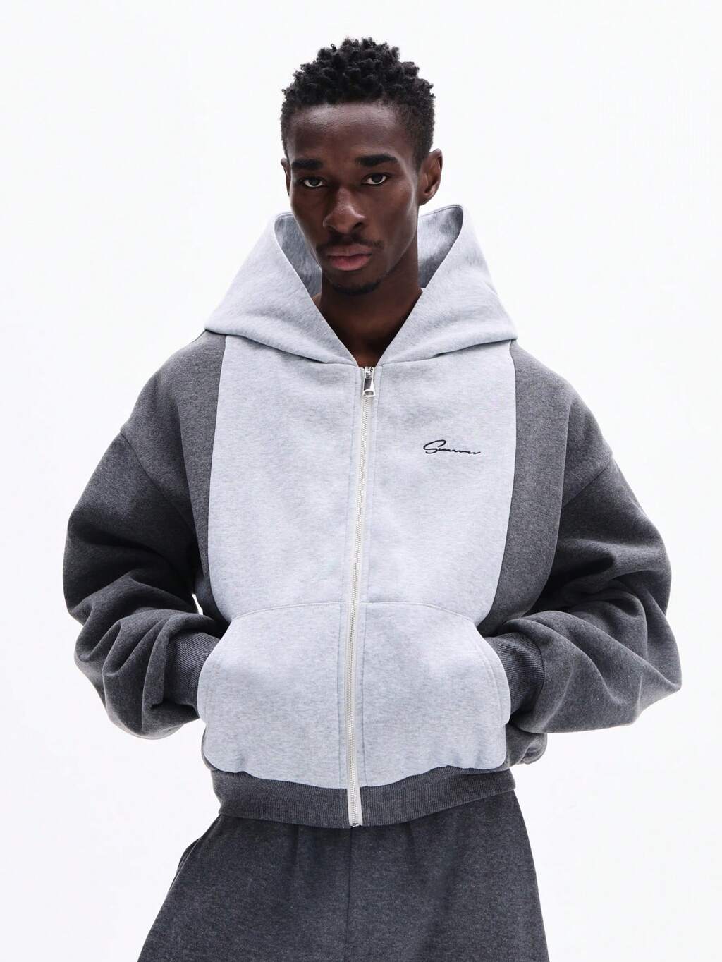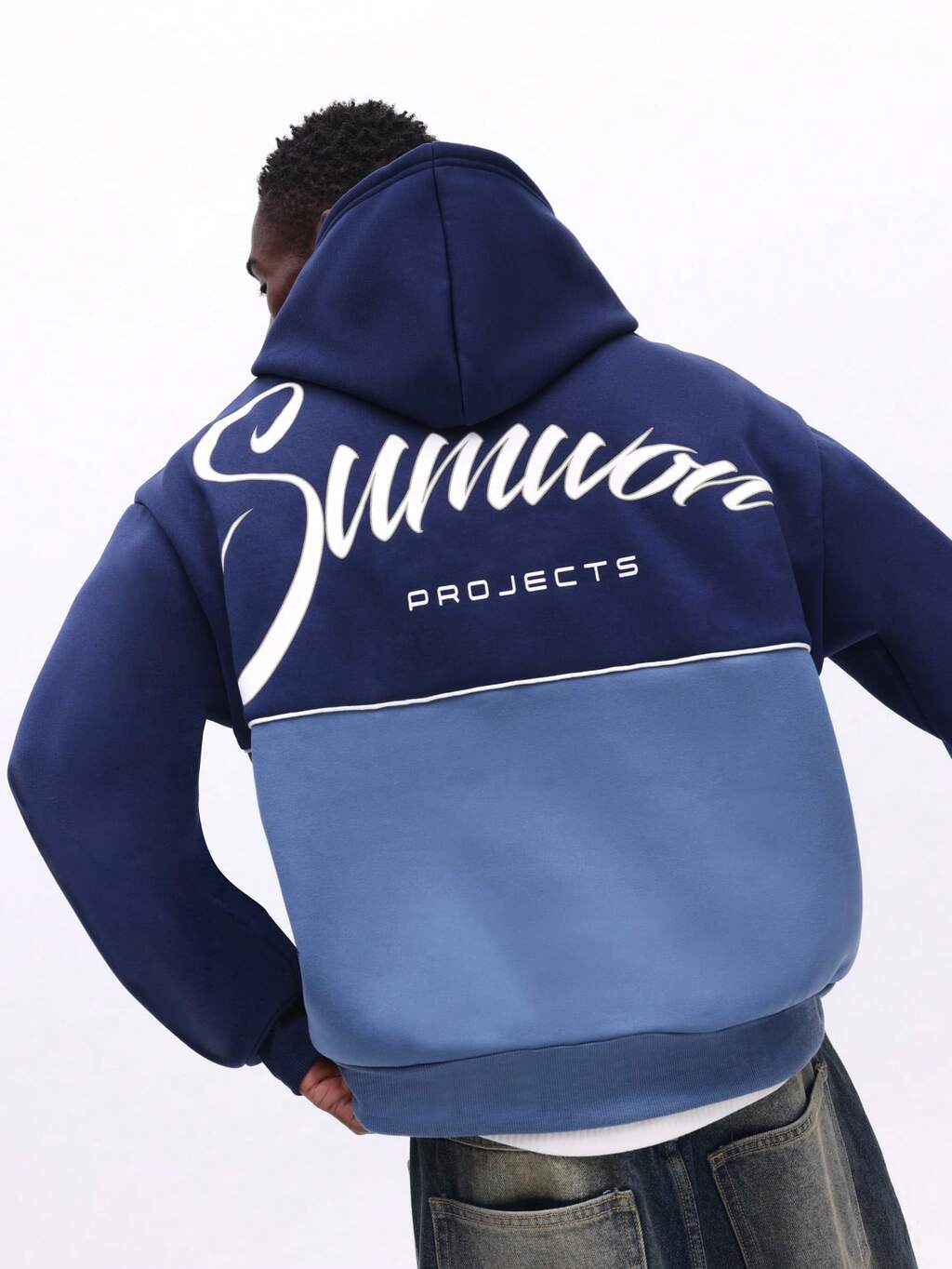 Oversized Color Block Kapuzenpullover mit Reißverschluss
