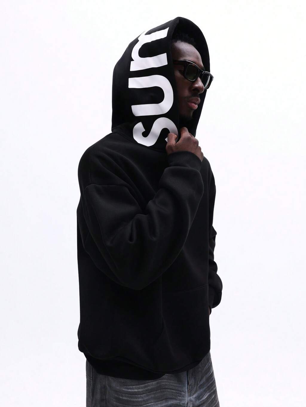 Oversize-Kapuzensweatshirt mit aufgedrucktem Textblock