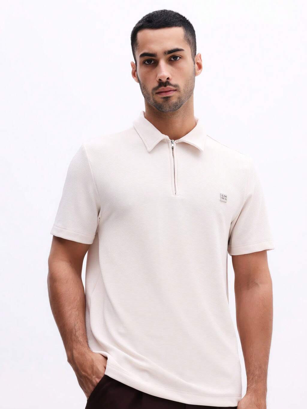 Schmal geschnittenes Poloshirt mit Rippstrick und Reißverschluss