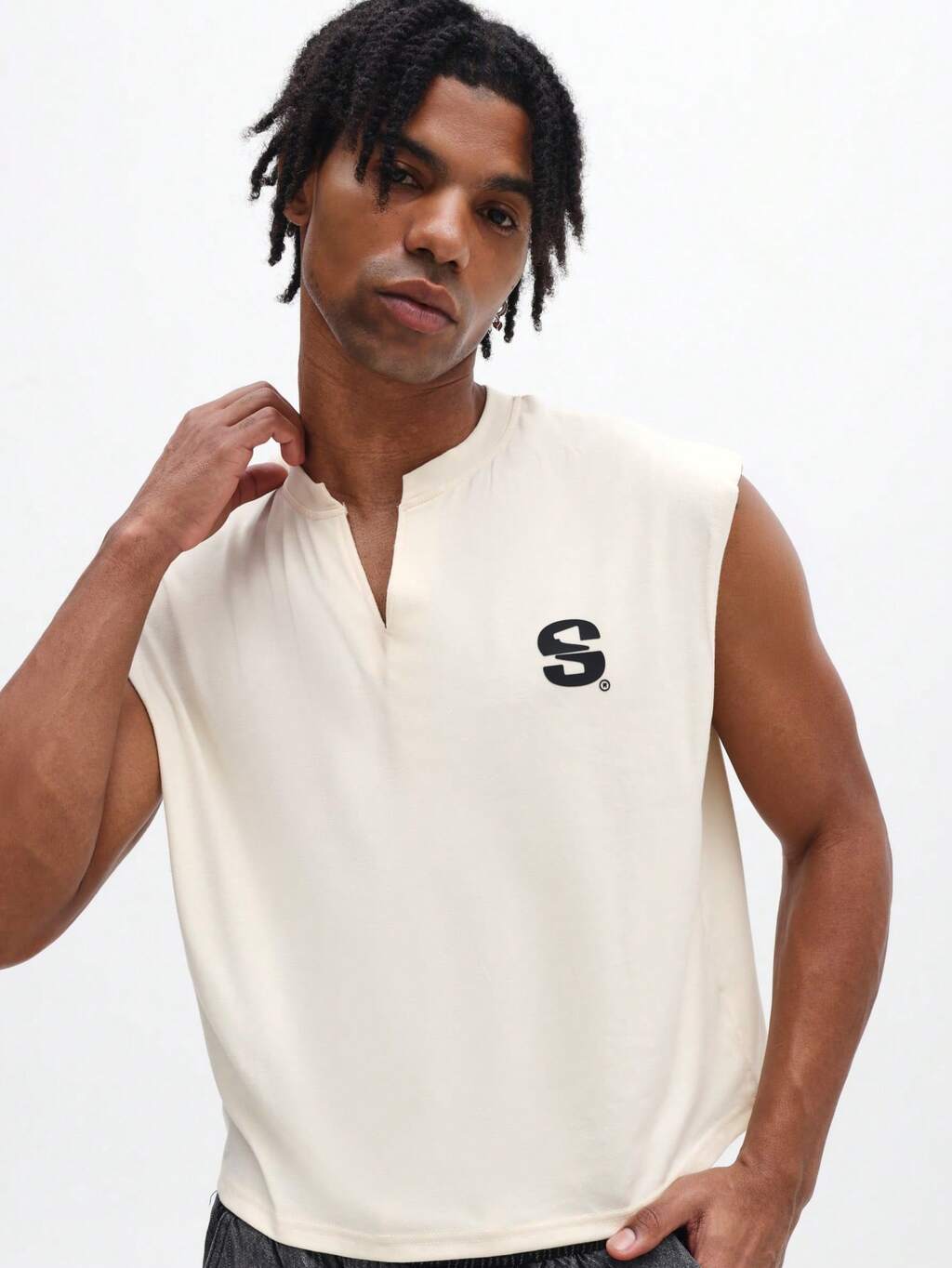 Herren ärmelloses Crop Tank Top mit Logo-Brustdruck, V-Ausschnitt, Sommer Casual Streetwear