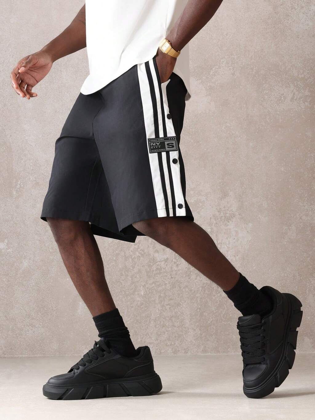Sportliche Nylon-Shorts mit seitlichen Druckknöpfen