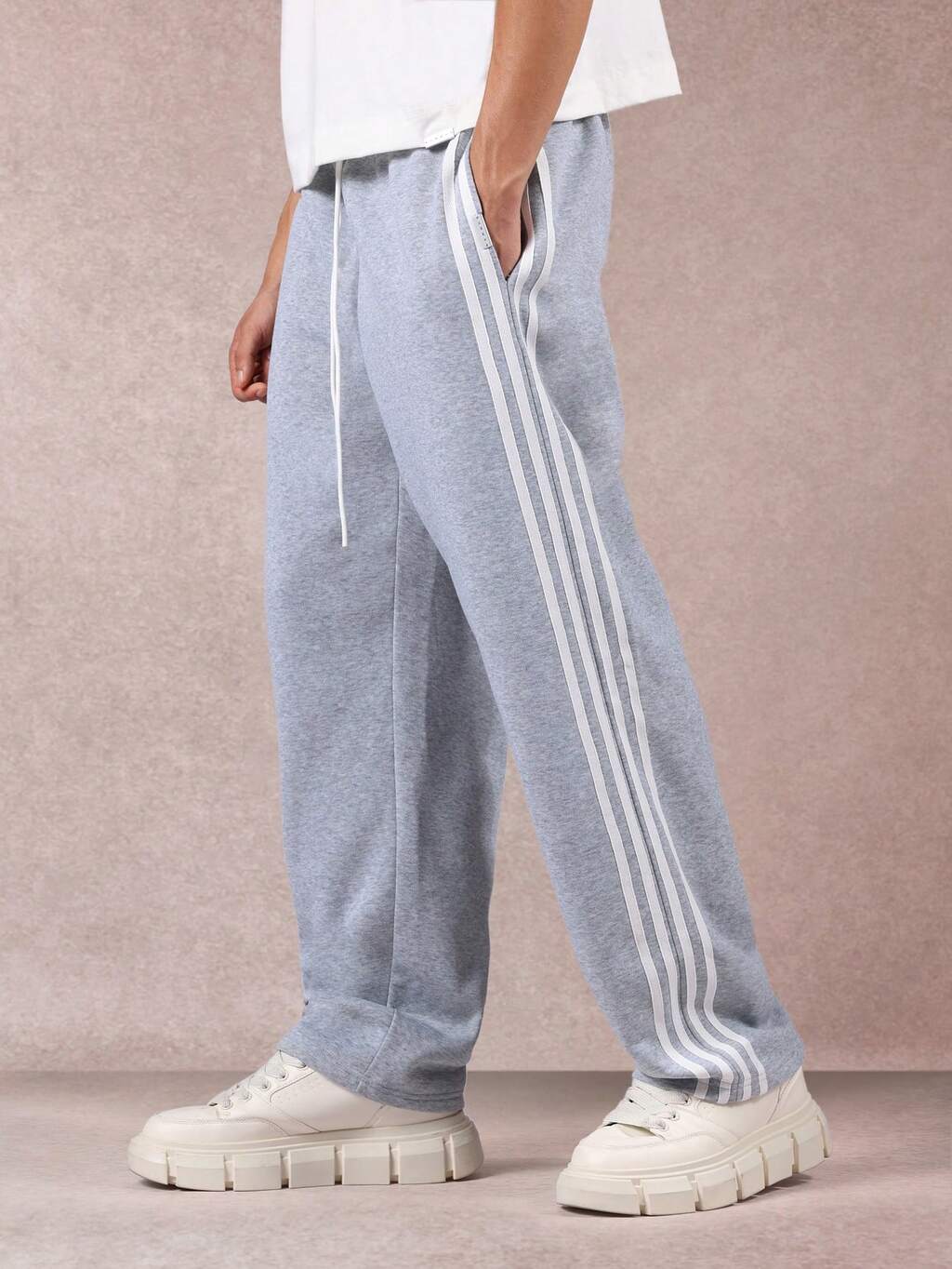 Melierte Jogginghose mit dreifachen Seitenstreifen und elastischen Bündchen