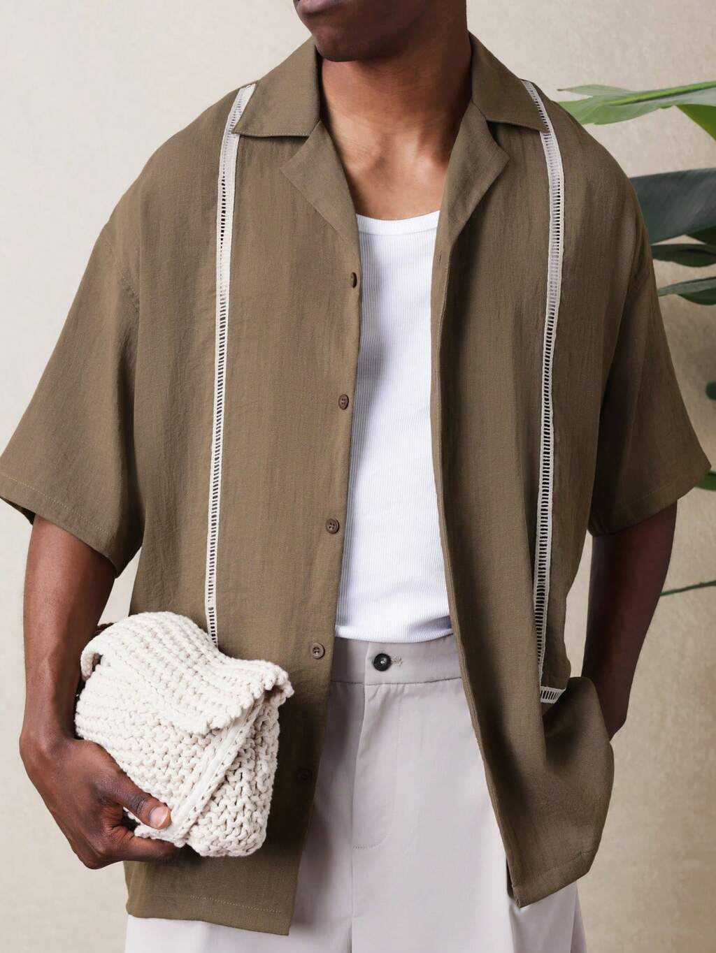 Besticktes Resorthemd mit Blumenmuster und Kentkragen