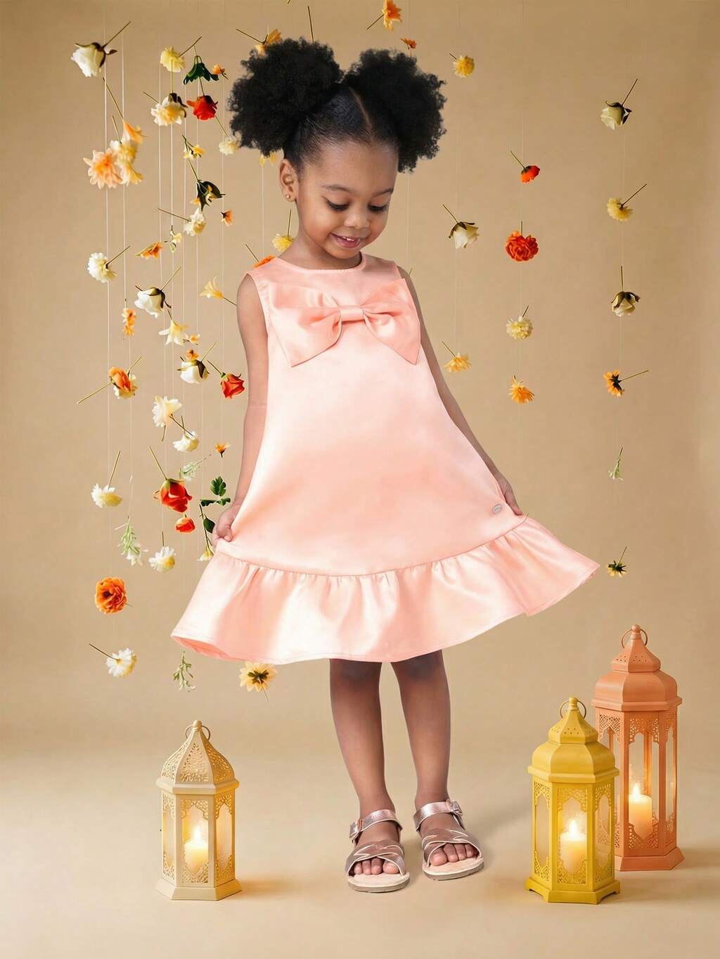Vestido de satén con lazo y volante en el bajo