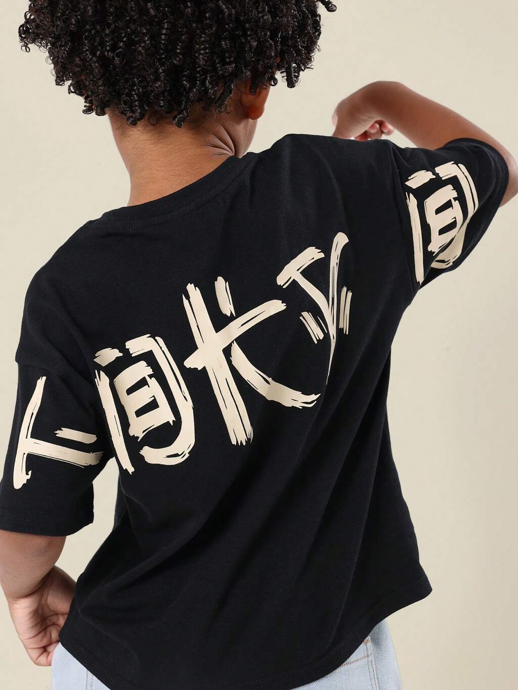 Camisetas de algodón con estampado gráfico en la espalda y escritura kanji de estilo callejero de Tokio