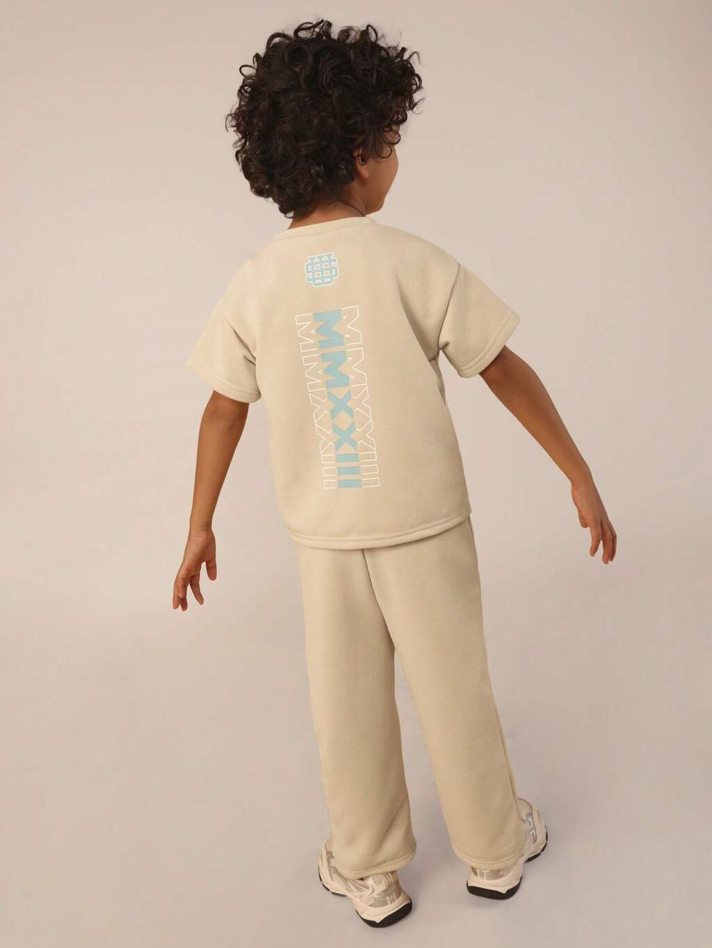 Camiseta con estampado 85 y pantalones cortos con cordón a juego