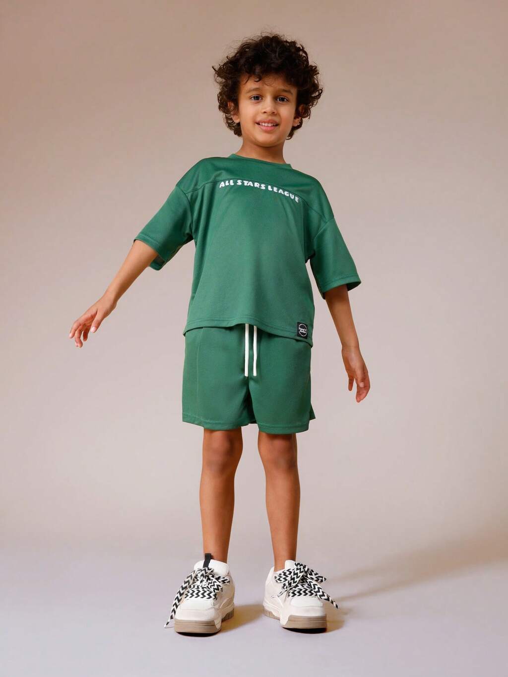 Conjunto de camiseta y pantalones cortos de malla verde