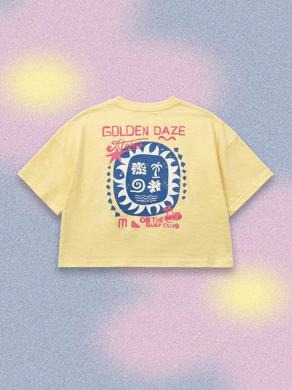 Camiseta de manga corta de verano informal con gráficos de sol y olas para chicas del club de surf Golden Daze de talla grande