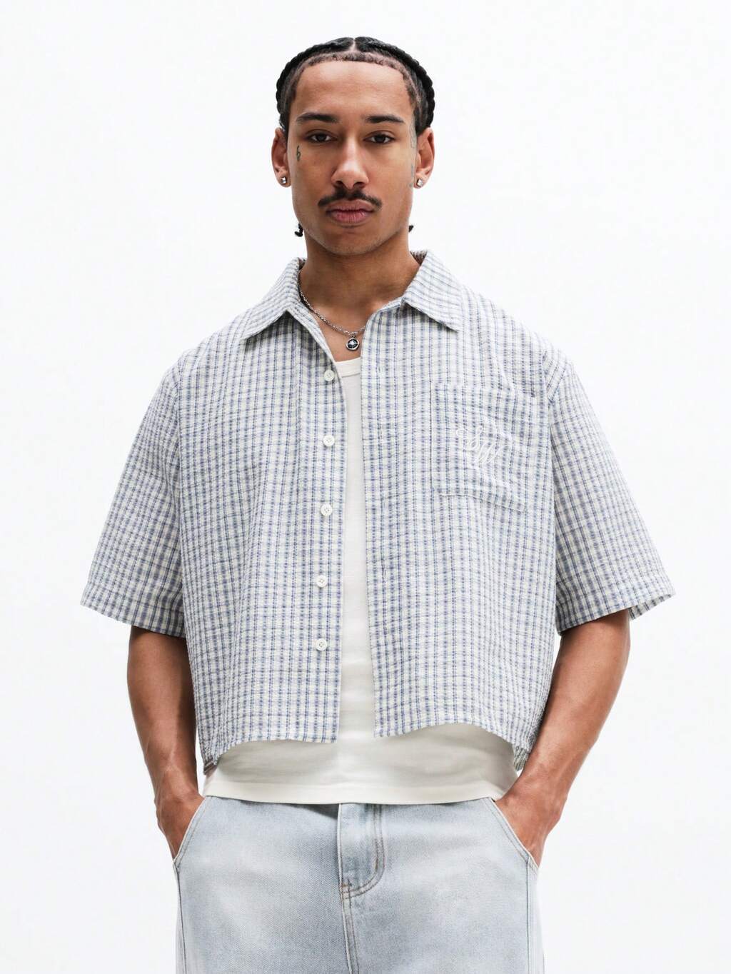 Camisa de manga corta con botones de gran tamaño y estampado clásico a cuadros