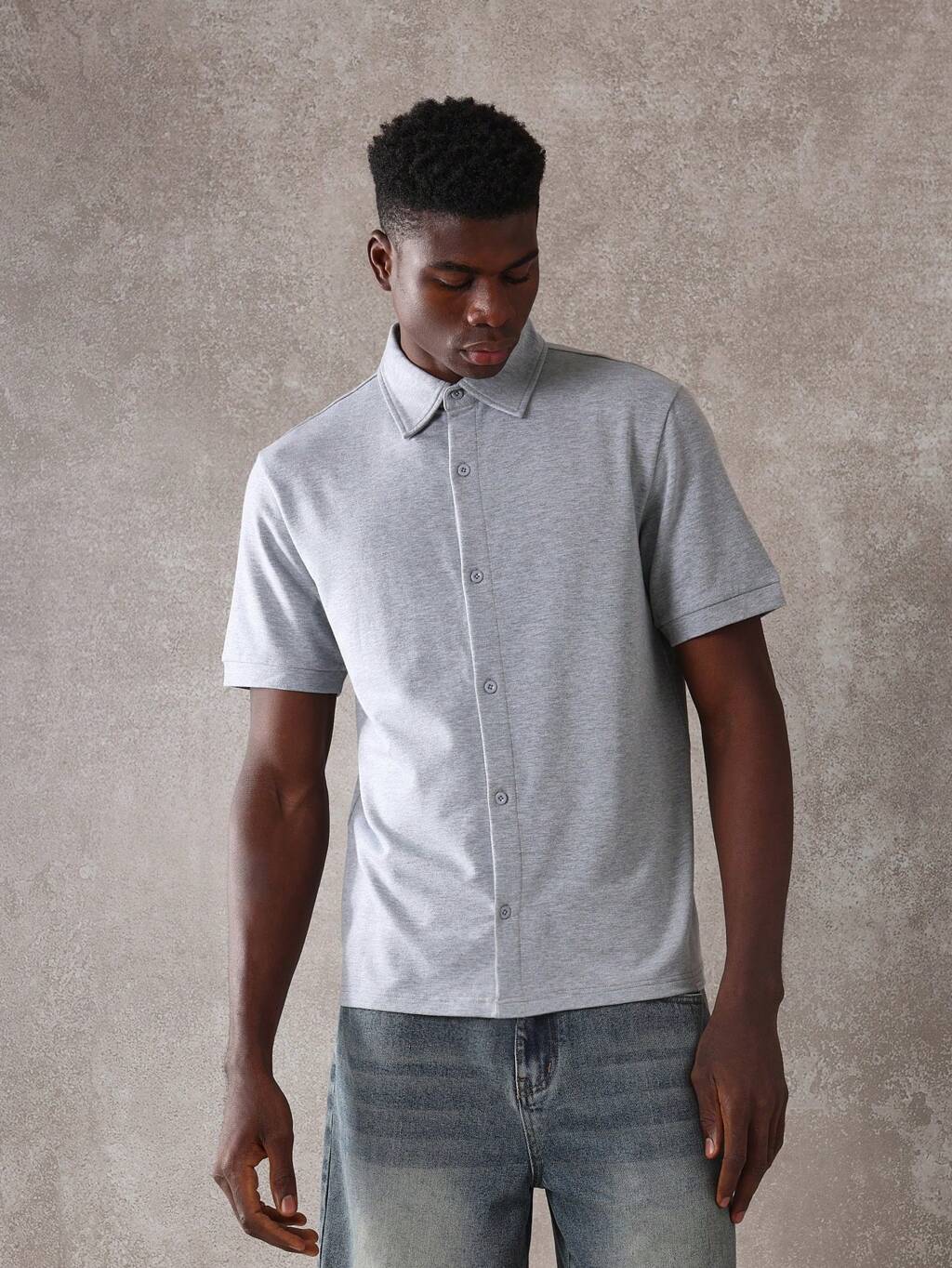 Camisa casual de verano de manga corta con cuello de botones, de ajuste cuadrado, texturizada y transparente