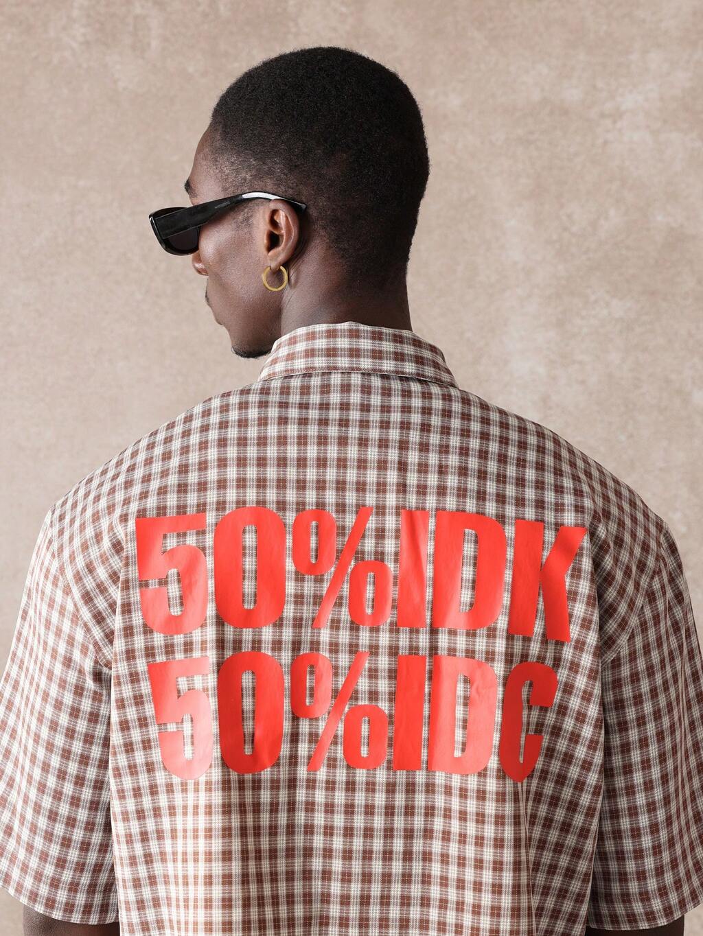 Camisa holgada a cuadros con gráfico impreso en la parte delantera y trasera