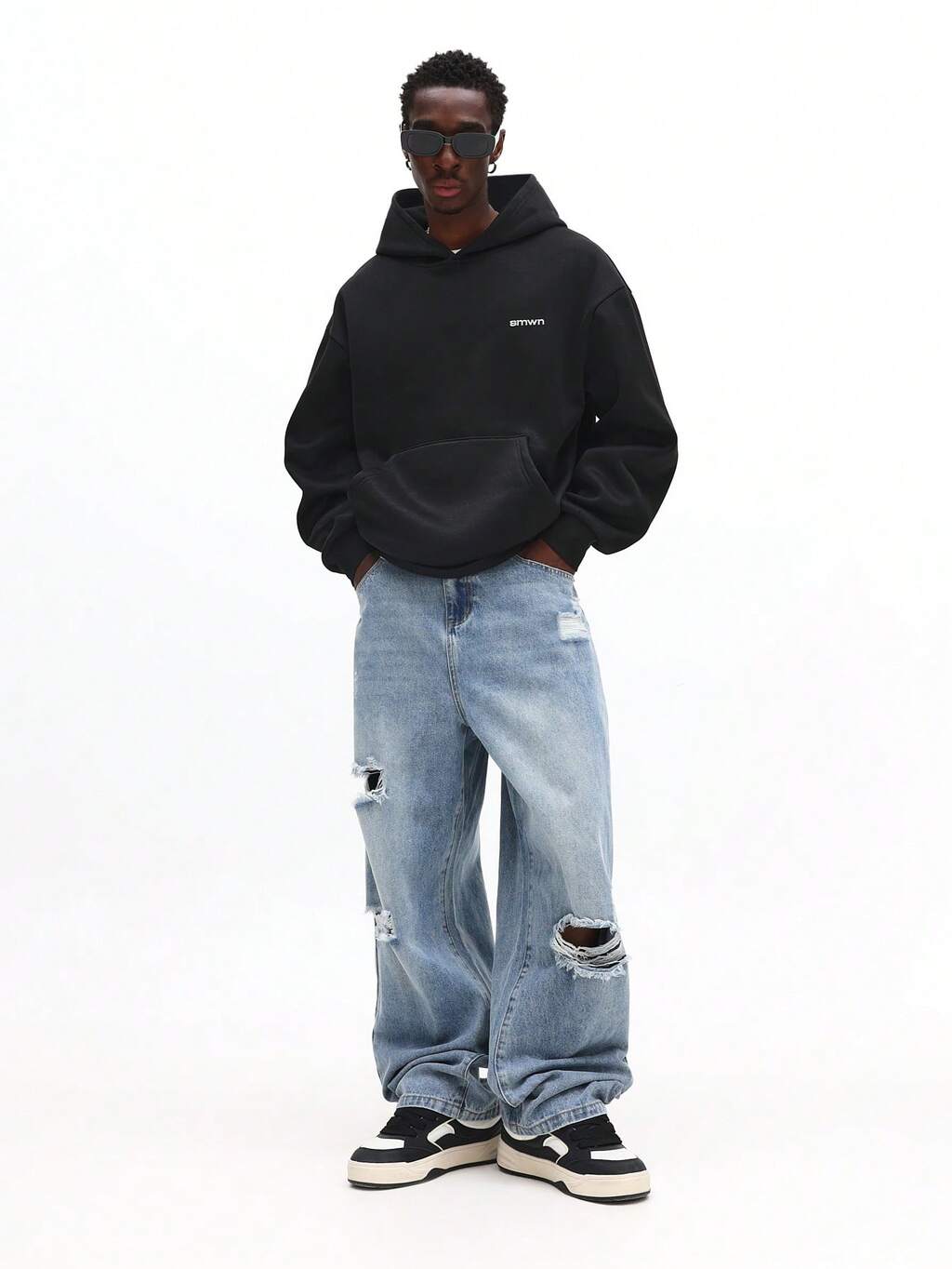PLAYBOY X SUMWON Jeans de mezclilla lavados con ajuste relajado, detalles desgastados y bolsillo trasero con marca para hombres
