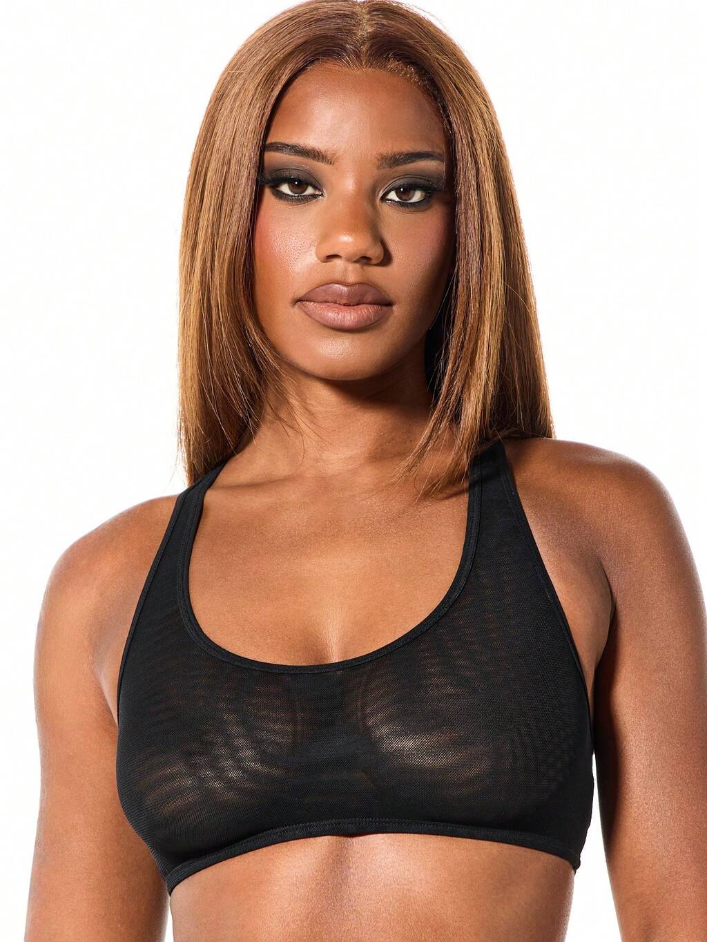 SUMWON WOMEN Bralette de malla de doble capa con efecto carrera