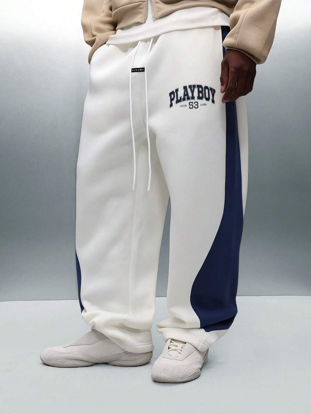 PLAYBOY X SUMWON Jogger de pierna ancha con panel de rayas laterales