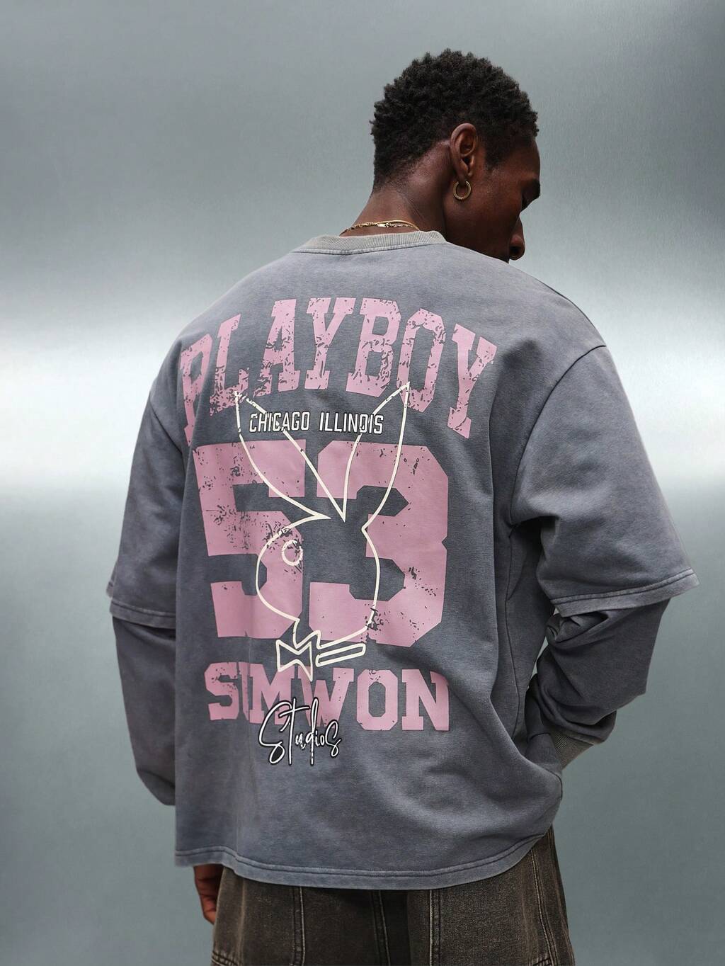 PLAYBOY X SUMWON Camiseta gráfica extragrande con capas y cuello redondo