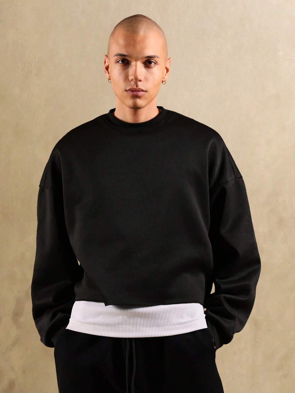 Sudadera corta con bordes sin rematar y cinturilla acanalada