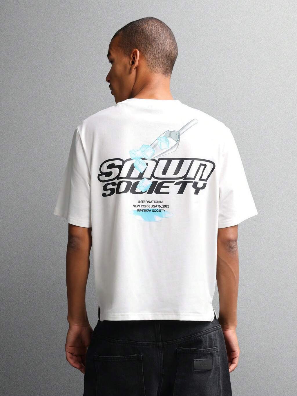 Camiseta blanca de corte cuadrado con estampado gráfico de cubitos de hielo