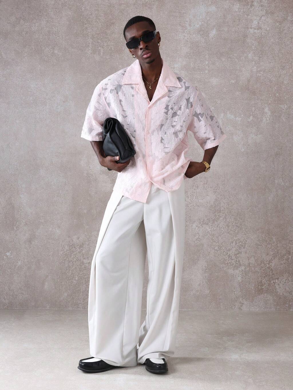 Camisa holgada de cuello campamento con botones y manga corta texturizada