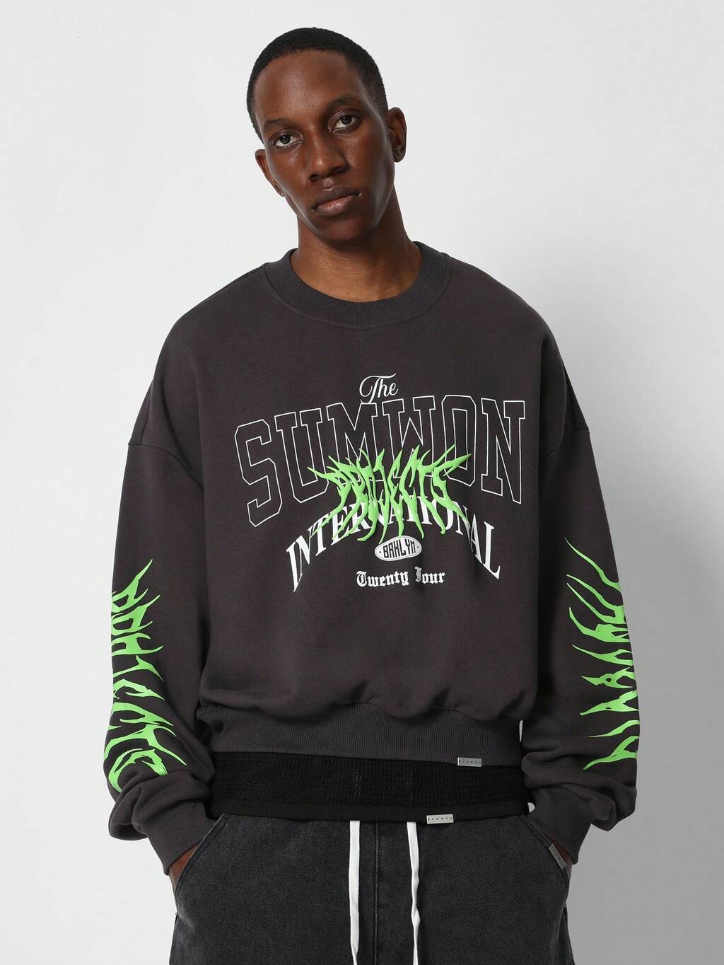 Sweat-shirt oversize en coton imprimé délavé vintage