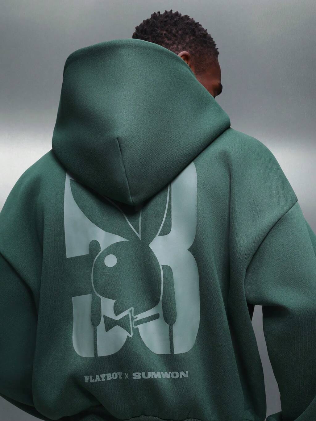PLAYBOY X SUMWON Sweat à capuche entièrement zippé avec poches fendues et capuche à cordon de serrage