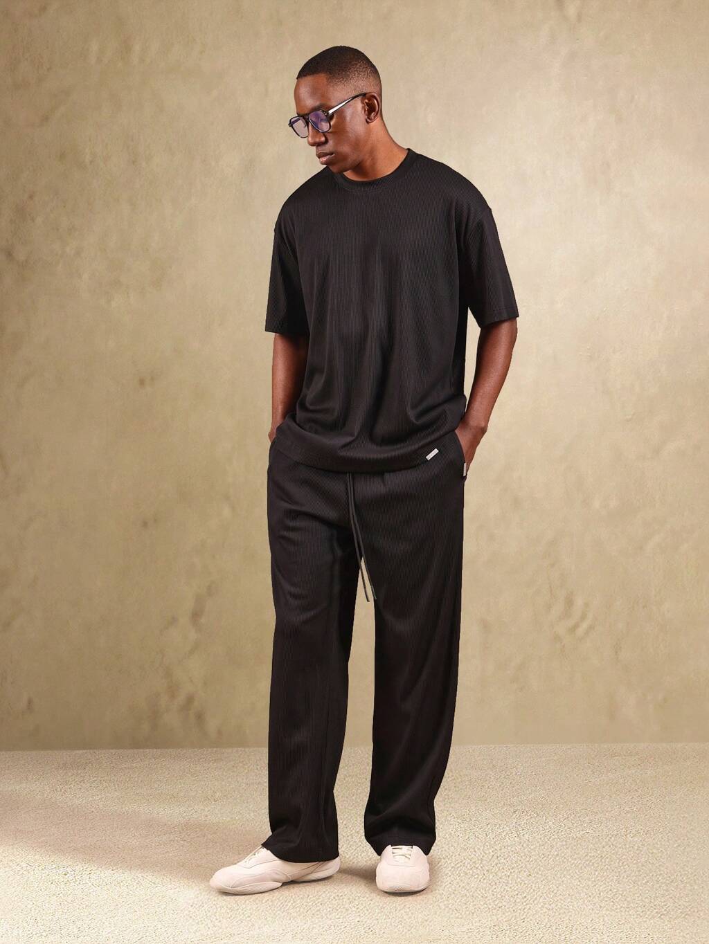 Ensemble t-shirt côtelé et pantalon large