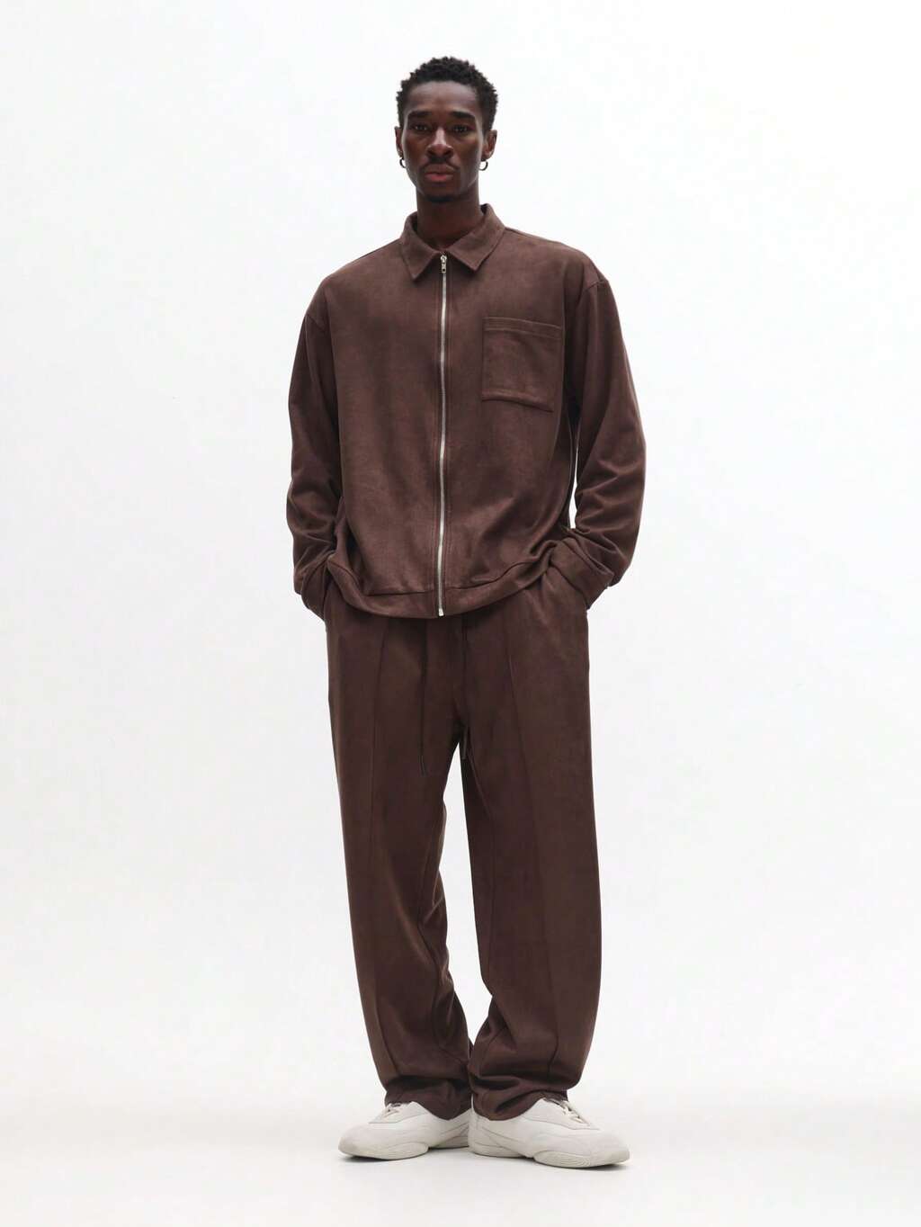 Sweat à capuche zippé surdimensionné avec pantalon de survêtement à jambe large