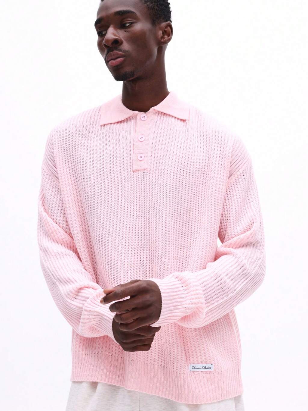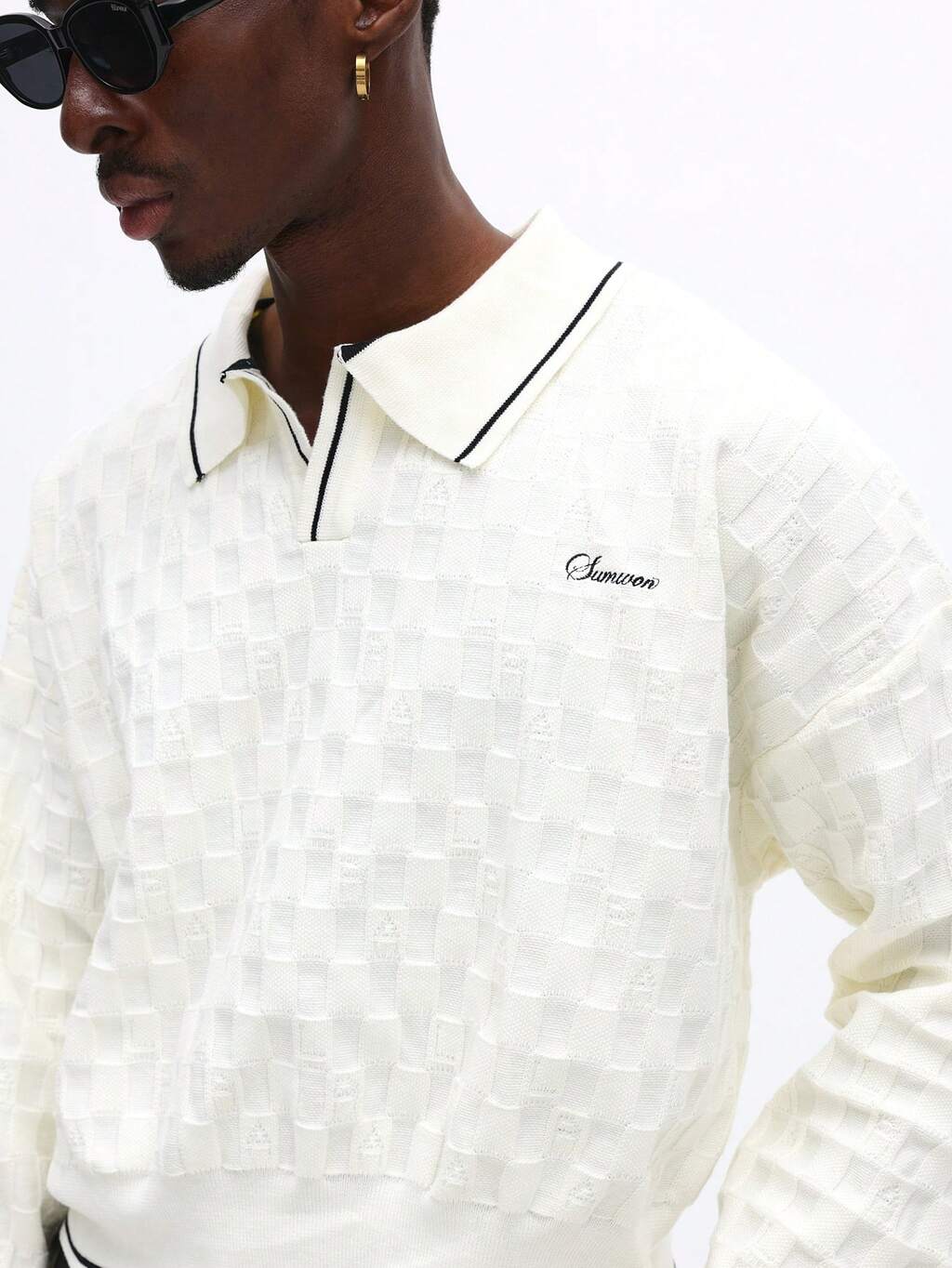 Polo vintage en tricot à manches courtes, texturé et boutonné, coupe décontractée