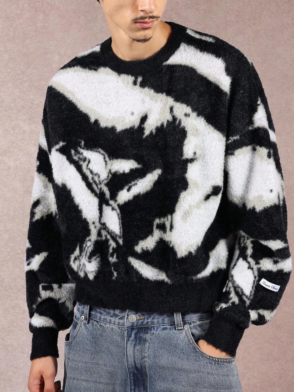 Pull streetwear en tricot à col rond et motif géométrique pixelisé