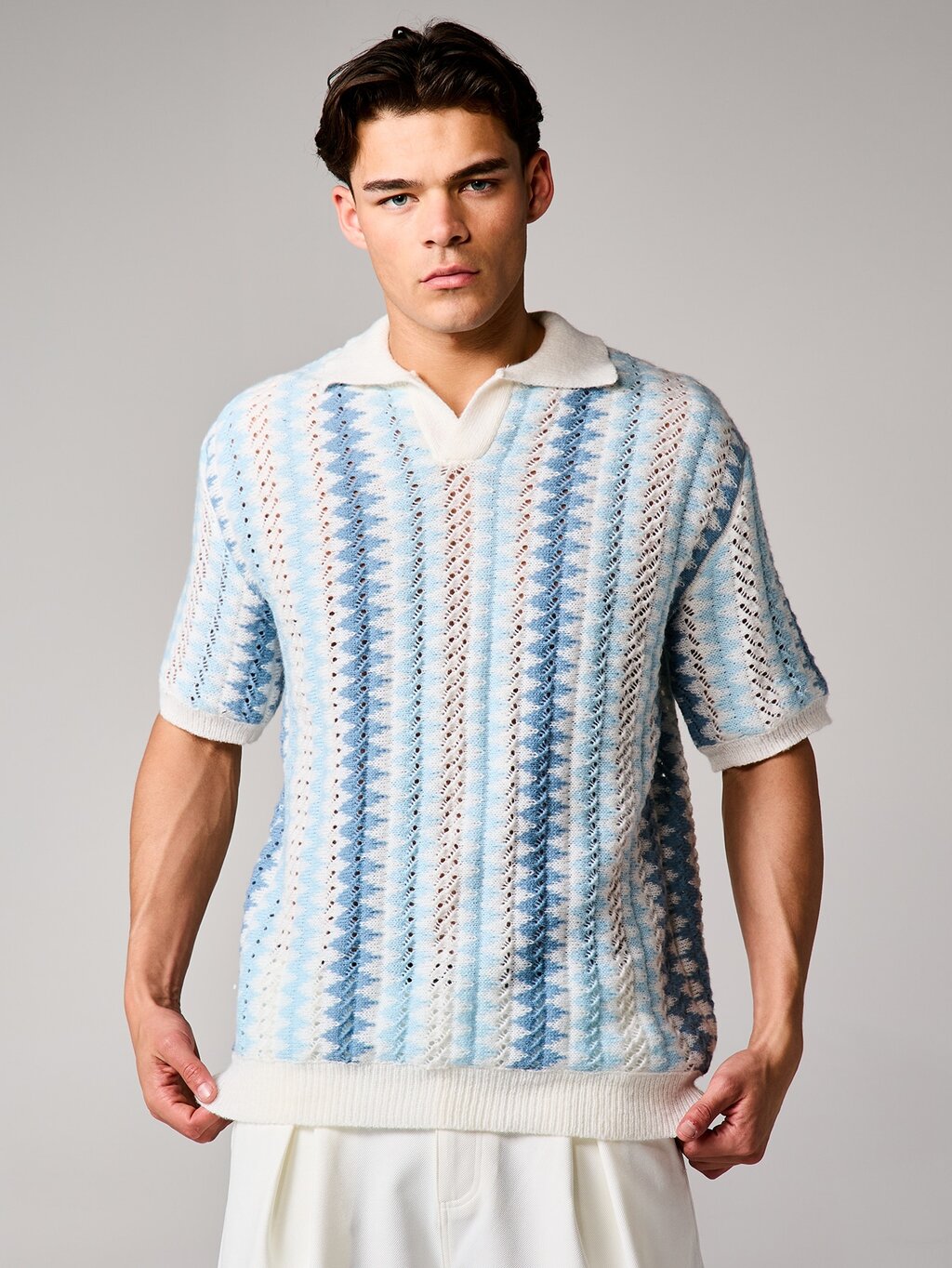 Pull à col polo à manches courtes en tricot côtelé inspiré du style vintage. Style rétro classique pour un port décontracté au quotidien en été.