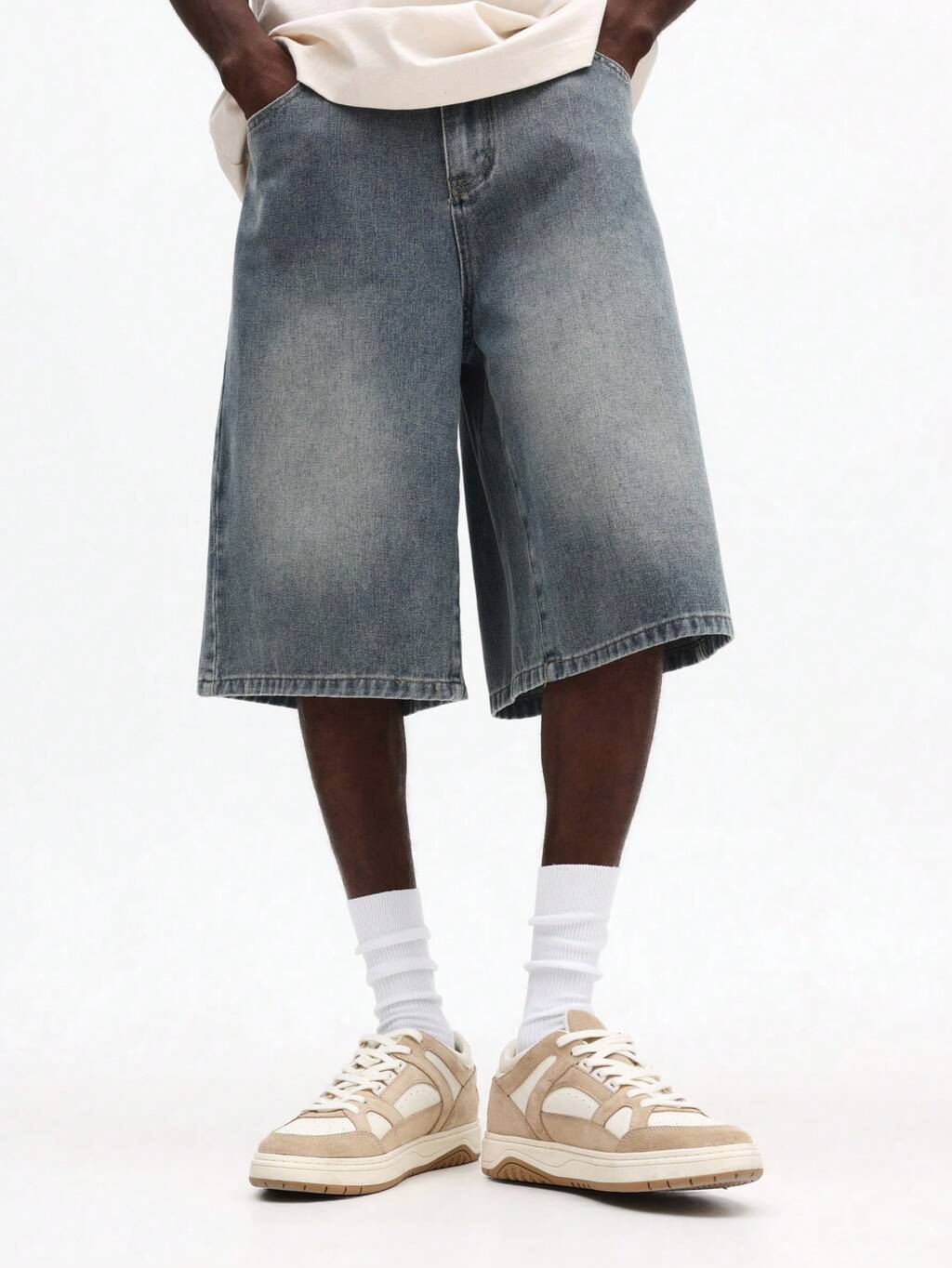 Bermuda en jean délavé vintage à jambes larges