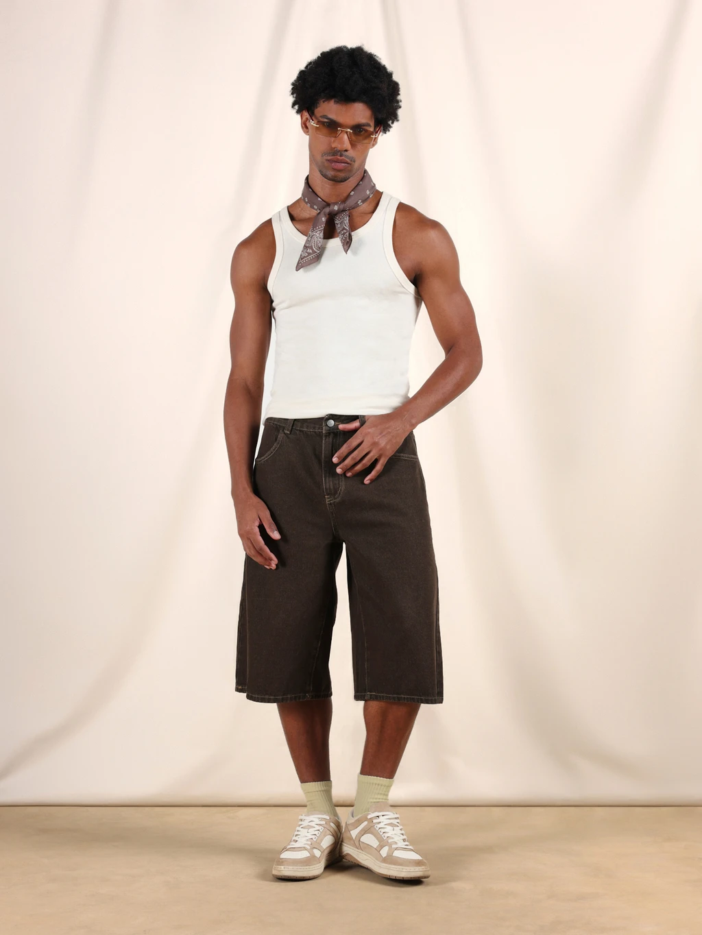 Short en jean bermuda ample bicolore