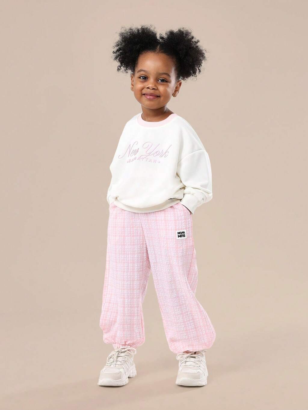 Ensemble sweat-shirt vert menthe et pantalon large avec texte rose