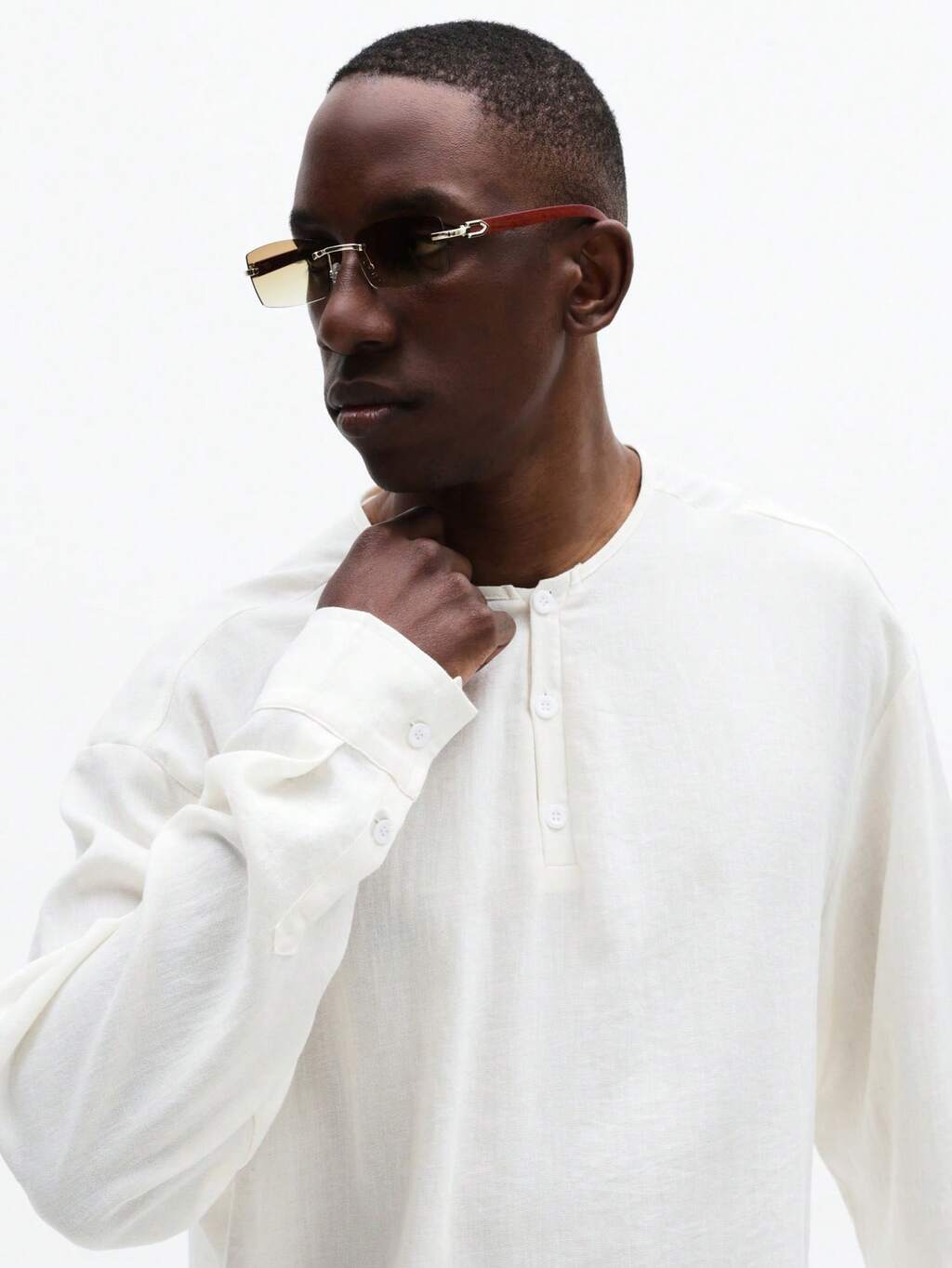 Chemise boutonnée à manches longues sans col mao