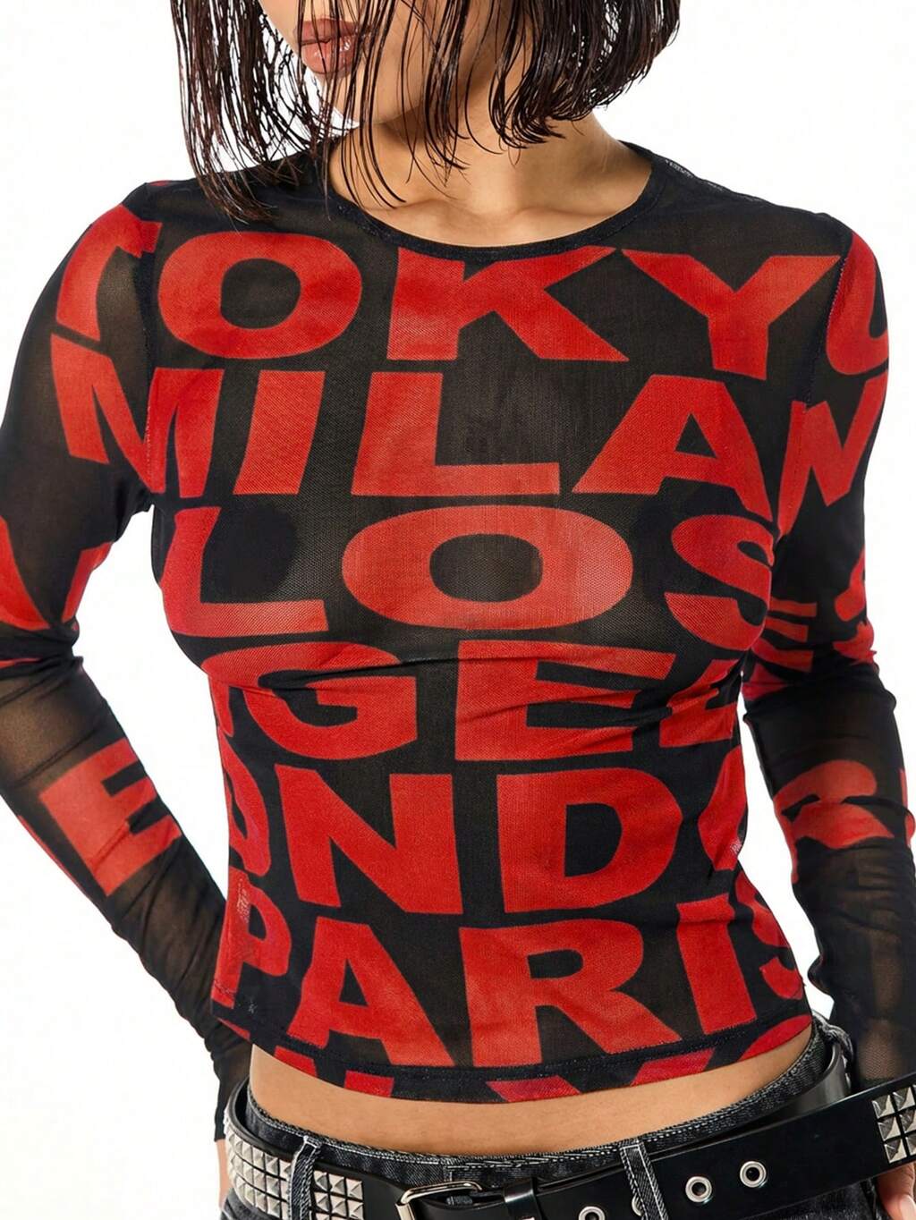 SUMWON WOMEN Débardeur graphique avec détails de clous découpés, imprimé de script et numéros en police gothique