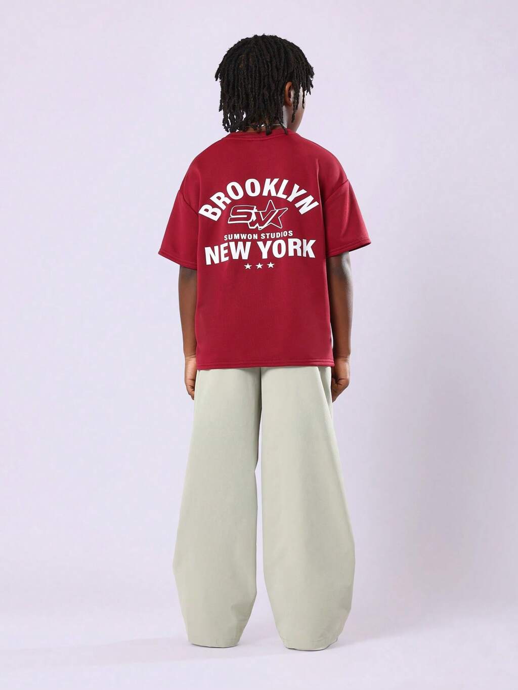 Ensemble t-shirt et pantalon surdimensionnés à imprimé graphique Brooklyn avec lettres universitaires