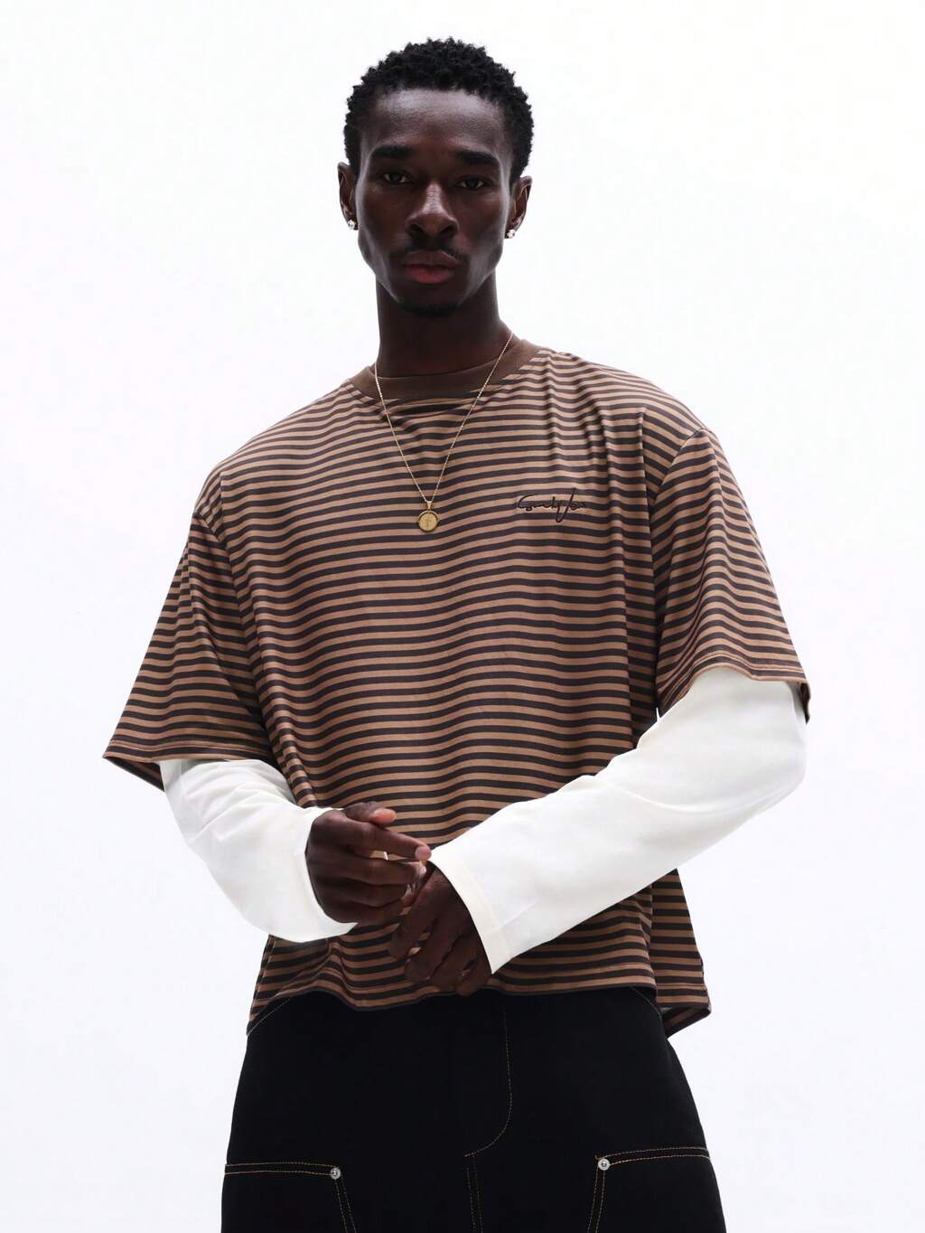 T-shirt rayé à manches longues et à superposition