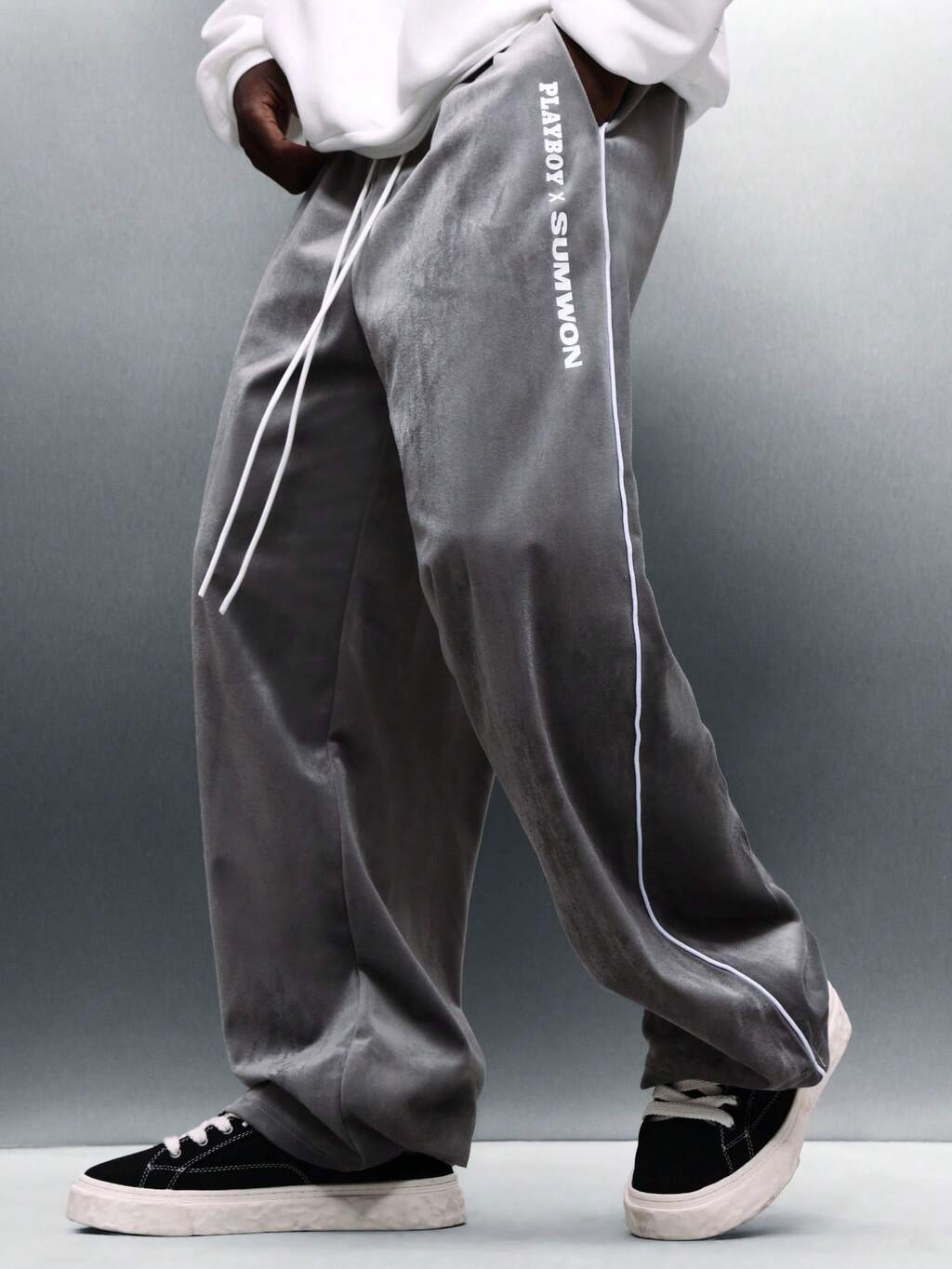 PLAYBOY X SUMWON Pantalon de jogging en velours à jambes larges avec logo