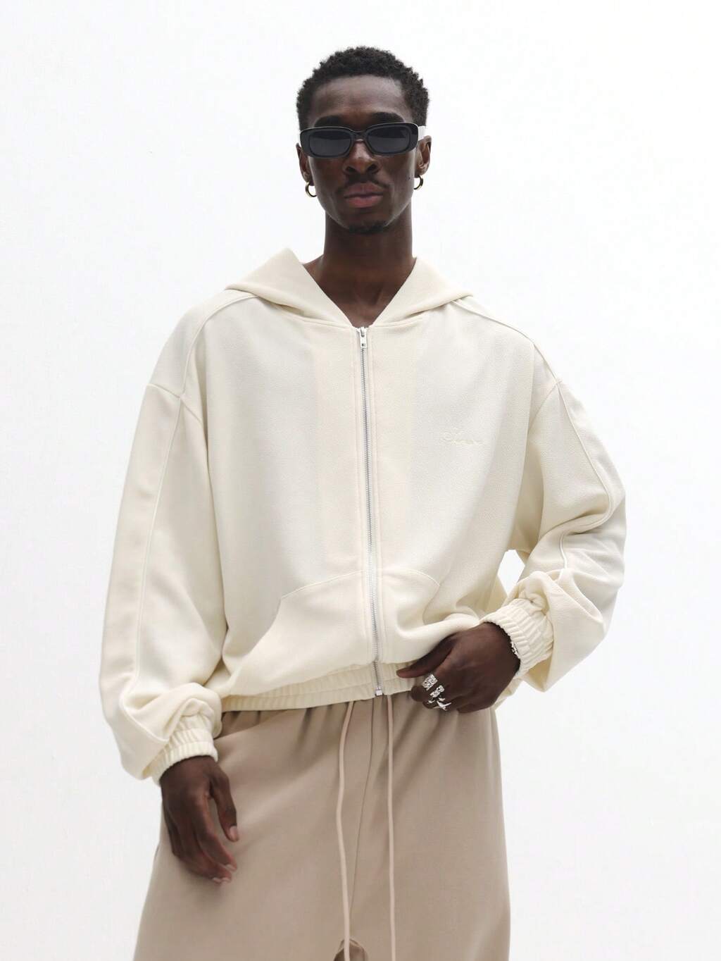 Sweat à capuche texturé entièrement zippé avec poches latérales et passepoil