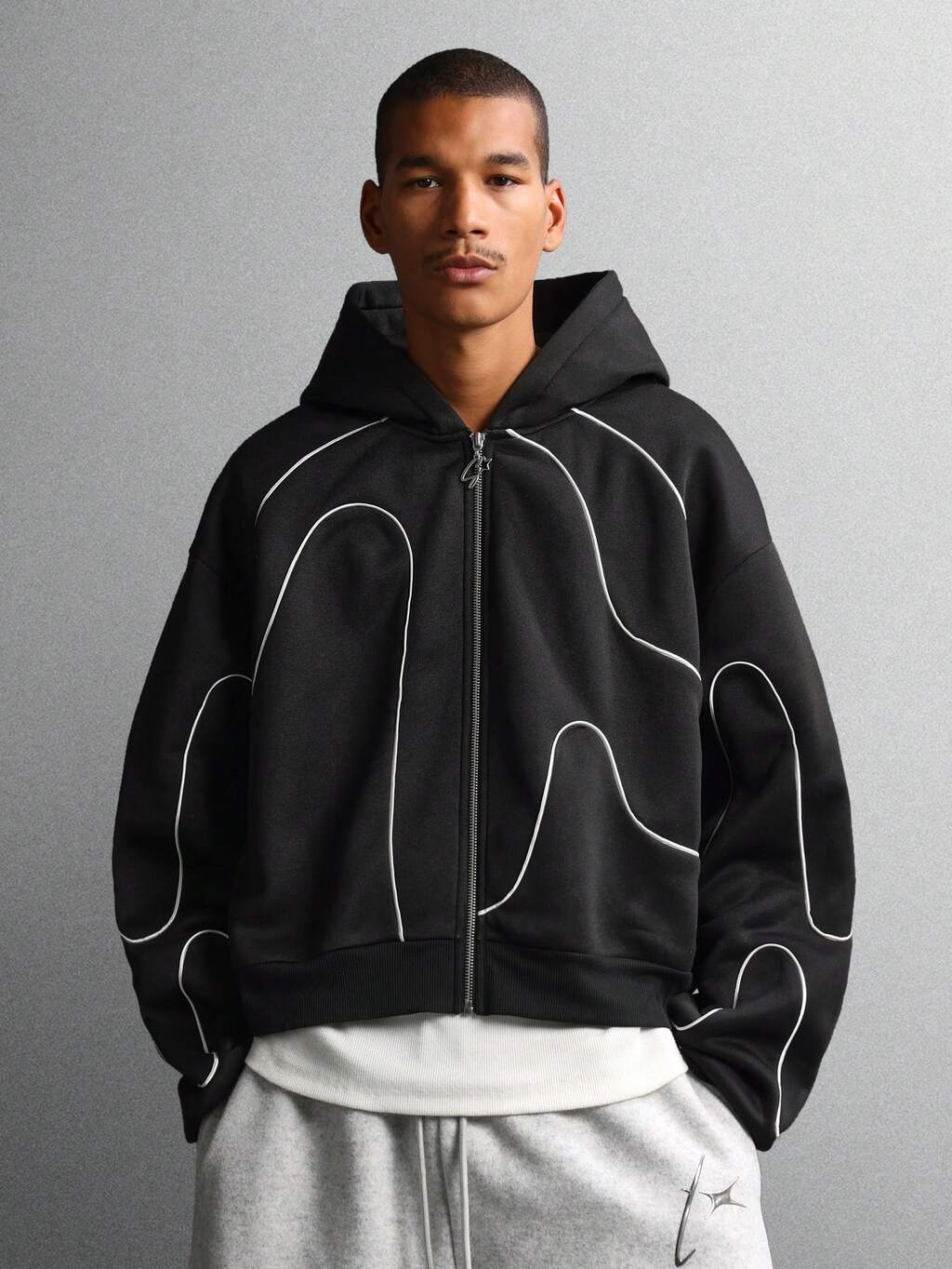 Sweat à capuche entièrement zippé avec passepoil incurvé blanc