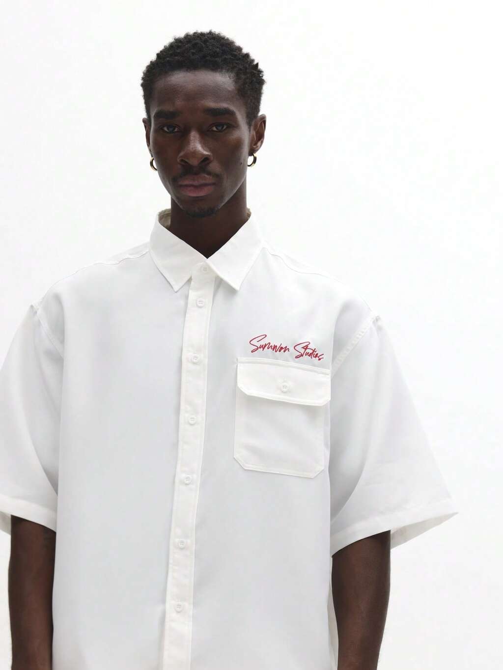 Chemise décontractée à manches courtes, coupe ample et boutonnée