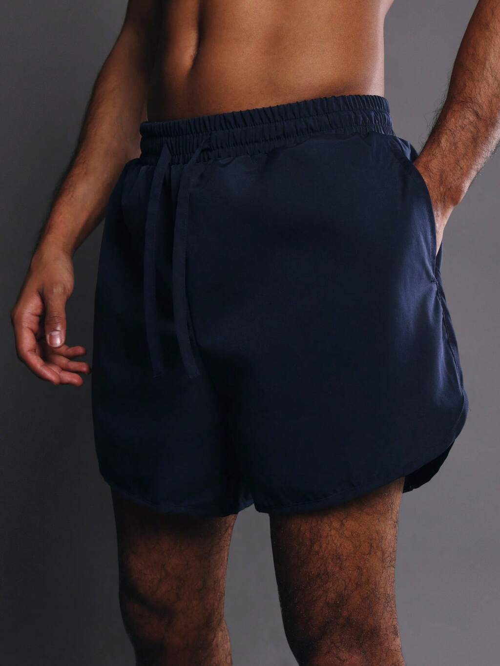 Pantaloncini sportivi da uomo con design a orlo curvo e tasche laterali, pantaloncini da allenamento e palestra con prestazioni, con coulisse in vita