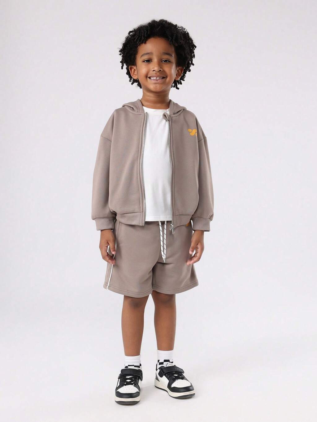 Completo felpa con cappuccio e pantaloncini con zip e tasche centrali