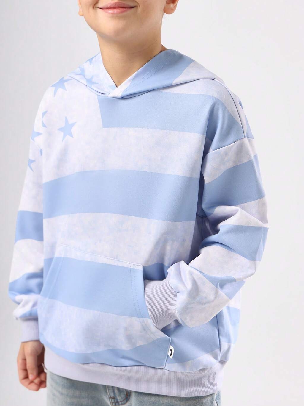 Felpa con cappuccio e stampa bandiera con motivo a stelle e strisce