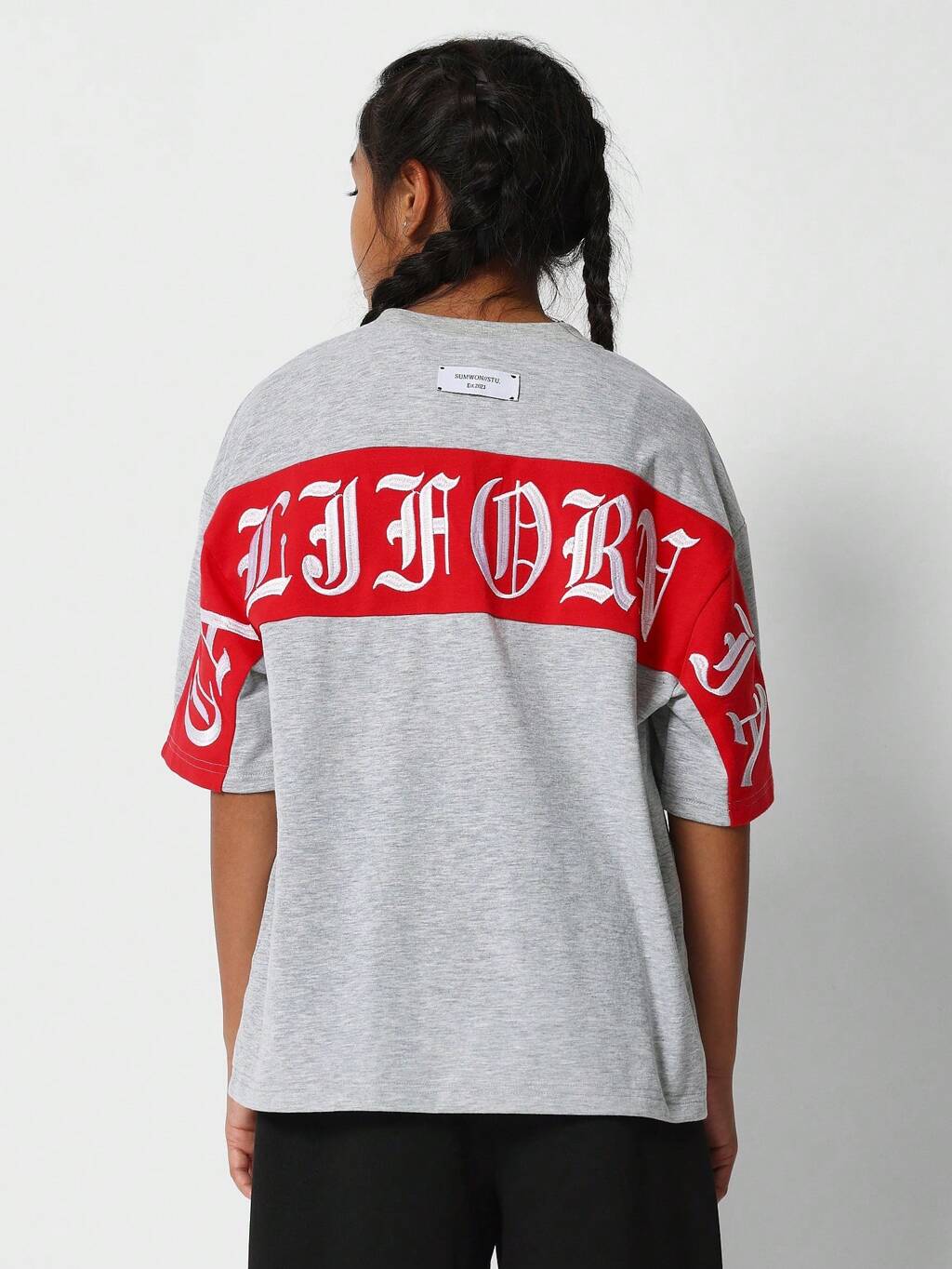 Maglietta oversize con blocchi di colore e stampa sul retro per ragazze pre-adolescenti